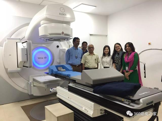 因为安检人员不允许我们对医院外观及内部拍照,所以在医院人员的带领下,我们在癌症肿瘤中心内部的设备旁拍了照片,留下了合影。
