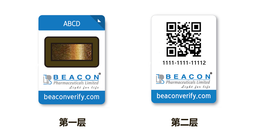 为提升公司品牌形象,维护市场秩序,保护广大患者利益,打击非法仿冒行为,碧康制药公司对防伪系统进行了升级:自2020年1月1日起,启动新的防伪标签,对所有产品全部粘贴新的防伪标签。新防伪标签式样如下: